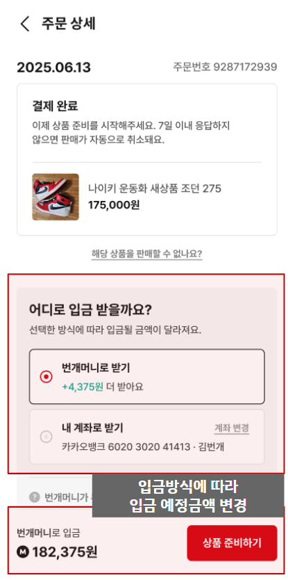 ▶ 입금 예정 확인 경로 : MY → 판매내역 → 주문서 선택 → 판매 승인