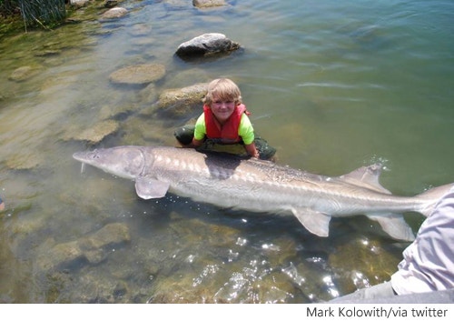 위 사진은 미국 아이다호에서 잡은 철갑상어로 한 때 해외 SNS에서 화제를 일으킨 사진으로 어린 아이가 거대한 물고기 앞에 있는 사진입니다. 사진은 소여 콜로윗이라는 9살소년으로 미국 아이다호 보이시에 산다고 합니다.