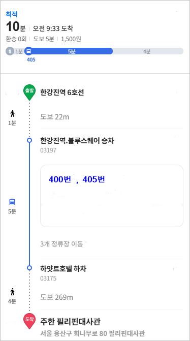 부산에서 시외버스로 필리핀 이태원에있는 필리핀대사관 갈려면 어디서내려야 빠를까요