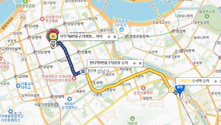 지하철을 이용하는 방법은 비교적 저렴하고 정시성이 보장됩니다. 강남차병원은 9호선 언주역과 가깝습니다.