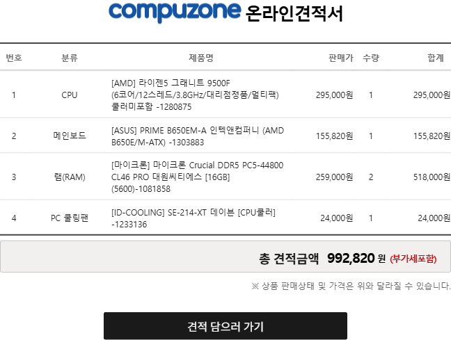 라이젠 9500F 이상급으로 구성해야지 프레임 드랍(잔렉) 많이 사라집니다