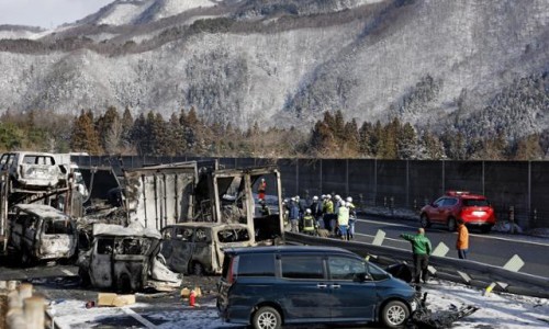 일본 군마현 간에쓰고속도로에서 대설로 인한 눈길에 67대 차량 연쇄 추돌 사고가 발생해 2명 사망, 26명 부상자가 발생했고 차량 화재와 통행 제한이 이어지고 있다.