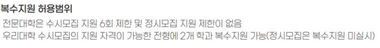 수시는 2개학과 복수지원 가능(단, 동일학과 복수지원 불가)했지만