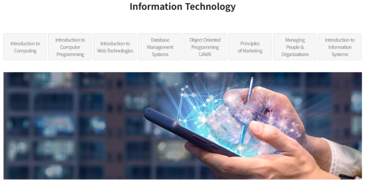 유니센터 국제전형 프로그램에서는 컴퓨터 프로그래밍, 컴퓨팅, 데이터베이스, 웹 테크놀로지, 객체 지향 프로그래밍 등 호주대학교 IT 관련 학과의 가장 난이도 높은 8개의 과목을 한국 강남에서 7개월간 학업하고 이 모든 과목을 면제 받아 호주대학교편입 2학년이 보장 됩니다.