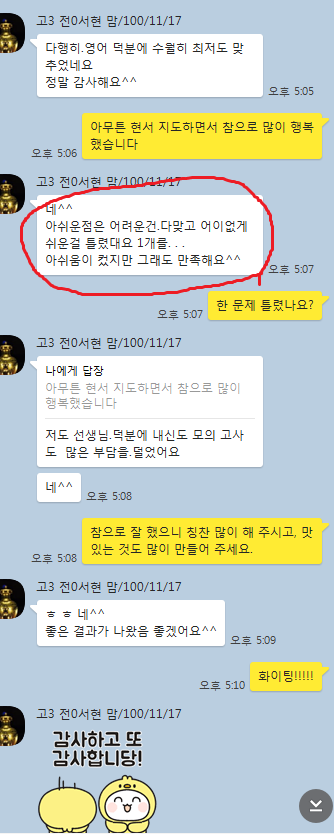 *고교 졸업한지 17년. 7등급 20일 수강하여 올해 수능 5등급(수능 성적표 확인 요망)