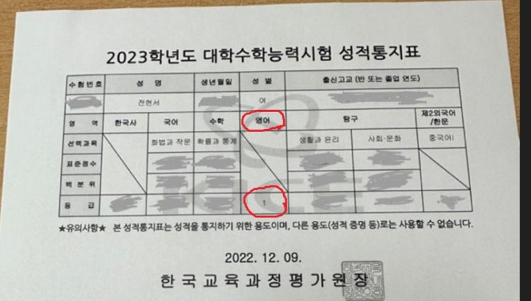 수능 성적표 증거를 제시할테니 날짜를 확인하여 공부 기간을 계산해보세요.
